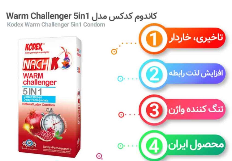 کاندوم 5کاره کدکس مدل وارم چلنجر 12عدد