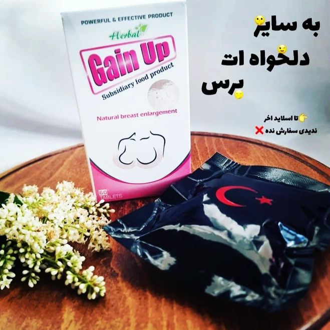 محصول حجم دهی سینه قرص چاقی و حجم دهی سینه برند گین آپ گلدپلاس++ : قرص حجم دهی سینه گین آپ توی یک دوره یک ماه 9سایز افزایش حجم داره که همون 16سانت میباشید این محصول توی یک ماه نتیجه دهی فوق العاده ای به مشتری میدهد اگر سینه ای شول و افتاده دارید یا اینکه کوچیک هست و میخواید بزرگ و صفتش کنید حتما یک دوره از سینه گین آپ ما استفاده کنید این افزایش حجم سینه تا آخر عمر برای شما ماندگار هست زیرا روش مصرف اصلی محصول سازنده رو بهتون میگیم که نتیجه دهی صد در صد باشه و اینکه حتی یک سایز بازگشت نداشته باشه سنین مصرف این محصول برای افرادی که سینه ای کوچک دارن از 49سال مورد استفاده هست و جوابدهی فوق را میدهد محصول سینه کاملا گیاهی و بدون عوارض هست و دارای ترکیباتی هست که فقط روی یک نقطه از بدن جواب میدهد با بقیه اندام کاری نداره ساخت ترکیهارسال محصول طی مدت زمانی دوروزه