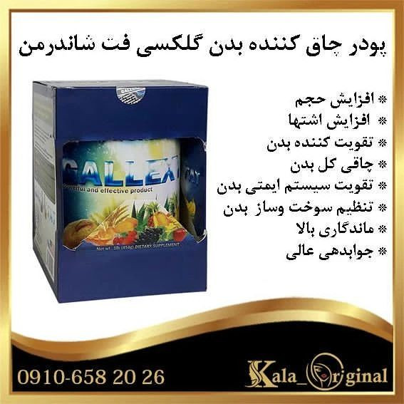 موارد مصرف : افزایش حجم افزایش اشتها تقویت کننده بدن چاقی کل بدن به صورت یکسان پودر گلکسی فت بدون بازگشت بدون عوارض مناسب آقایان و بانوان افزایش قدرت تحمل وپایداری مقابله با پیری وعوارض ان تقویت سیستم ایمتی بدن تنظیم سوخت وساز متابولیسم بدن بهبود بی خوابی وبد خوابی افزایش قدرت قلبی وعروقی ماندگاری بالا جوابدهی عالی ترکیبات : شکر زینک پودر سفیده ی تخم مرغ پروتئین هایی به نام whey و شیر ویتامین های D, A, C, B6, B12 پروتئین هایی که با شیر غلیظ شده اند. پروتئین هایی که با آب پنیر غلیظ شده اند. موارد منع مصرف : خانم های باردار و شیرده کسانی که دارای بیماری و یا مشکل خاصی هستند مثل زخم معده ، مشکلات گوارشی ، بیماری قلبی و …. افراد دارای فشار خون بالا برای افراد زیر 15 و بالای 50 سال به هیچ وجه توصیه نمیشود که مصرف بکنند روش مصرف : یک ساعت بعد از صبحانه و یک ساعت قبل از شام به اندازه ی یک قاشق غذاخوری از این پودر گیاهی را در یک لیوان آبمیوه و یا آب حل کنید و میل کنید. وزن خالص : 450 گرم وزن بسته بندی : 500 گرم