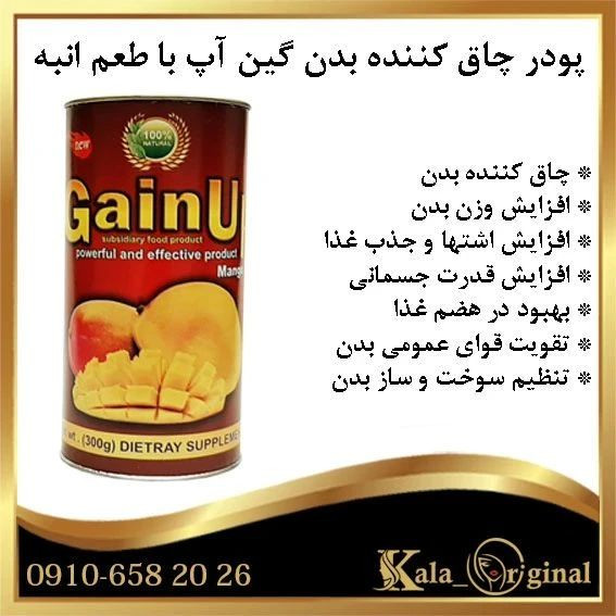 موارد مصرف : افزایش اشتها بهبود در هضم غذا تناسب وزن، حجم و اندازه صورت موارد منع مصرف : این محصول برای زنان باردار و افراد تحت مراقبت توصیه نمی شود. این محصول برای افراد زیر 16 سال توصیه نمی شود. بیشتر از مقدار پیشهناد شده استفاده نکنید. نحوه استفاده : یک پیمانه گین آپ را به همراه 250 سی سی آب، 30 دقیقه قبل از صبحانه و ناهار استفاده شود. نحوه نگهداری : این محصول را در جای خشک و تاریک و خنک نگهداری کنید. توضیحات : پروتئین در این محصول از شیر، تخم مرغ، ماهی و سویا گرفته شده است. کربوهیدرات این محصول از برنج گندم و مقدار کمی از قند میوه است. چربی این محصول از تخم مرغ، روغن زیتون، روغن ماهی، روغن گردو، بادام به علاوه عصاره 9 گیاه چاق کننده با فرمول کلاسیک است. . . 09188889883. . .